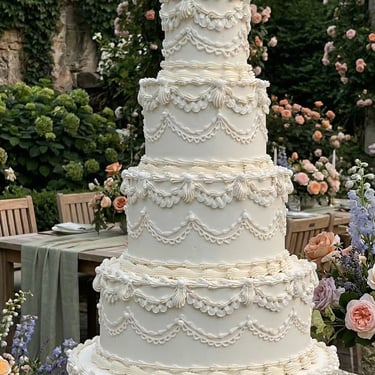 The cake was a stunning centerpiece that everyone admired and tasted heavenly.